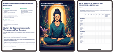 Al adquirir tu MASTER KIT TERAPUTICO hoy, recibirás totalmente GRATIS 5 regalos poderosos para atraer más clientes y transmitir professionalismo en tus redes y sesiones: