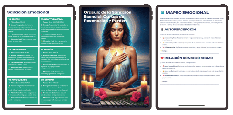 Oráculo exclusivo con mensajes de sanación + guía práctica para sesiones de limpieza emocional.